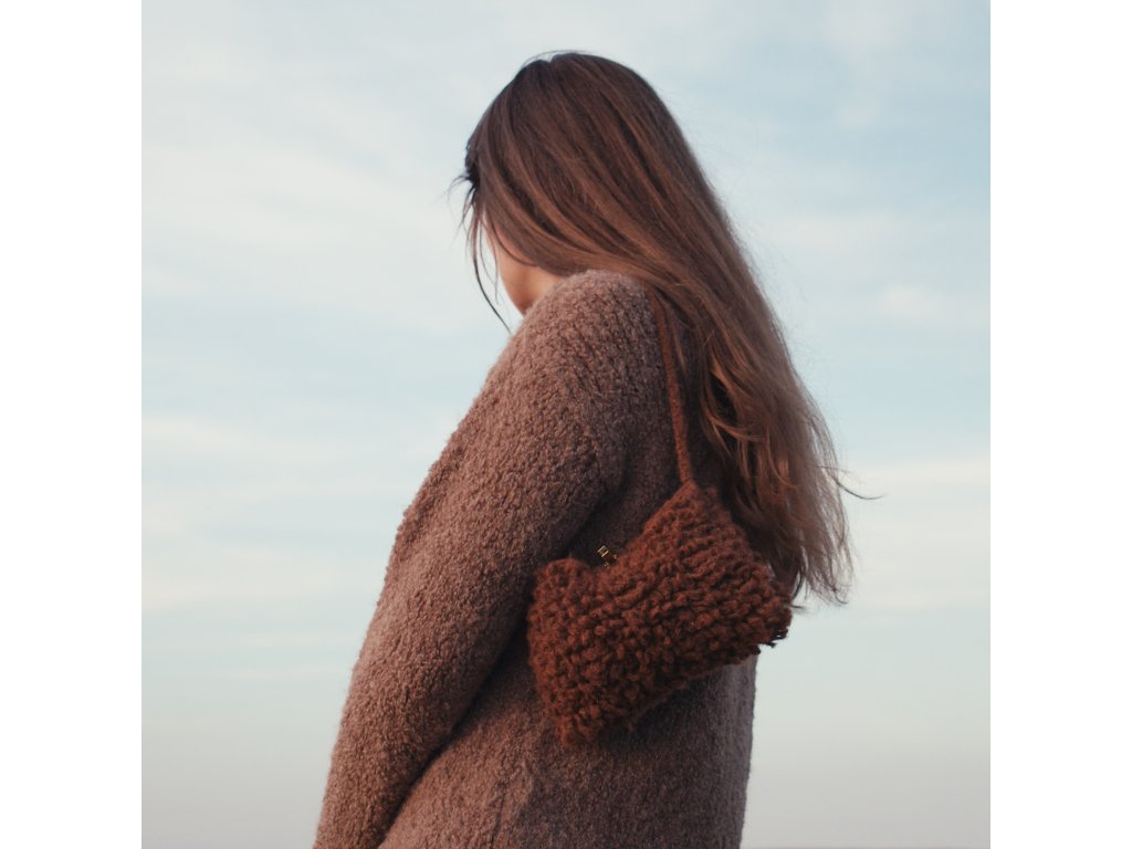 Kabelečka MINI je vyrobena z měkké, nadýchané příze v bohatém hnědém odstínu, který připomíná podzimní kaštany a teplé večery u krbu. Díky originální struktuře pletení a minimalistickému tvaru se stává výrazným doplňkem každého outfitu – od městského kabátu až po ležérní svetr. Může sloužit i jako psaníčko do ruky, kdy se ucho kabelky zastrčí dovnitř.